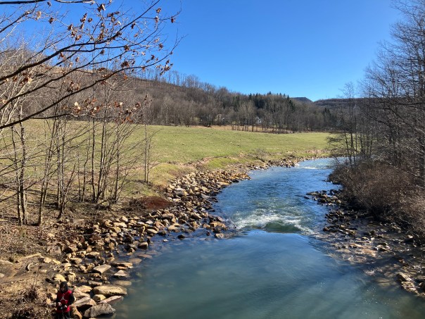 The Vintondale refuse pile was located adjacent to the South Branch Blacklick Creek just east of Vintondale Borough and along the Ghost Town Trail. Toxic leachate from the refuse pile seeped directly into the stream. In addition to polluting the stream with leachate, the pile contaminated the stream by eroding directly into it, contributing to siltation and smothering substrate habitat. The Vintondale pile was not only a significant polluter of the South Branch, but it is also an eyesore for users of the nearby trail. The pile contained approximately 310,000 tons of refuse and red dog (burned refuse) and covered about 11 acres. The quality of the pile precluded removal for profit by the waste coal industry so, The Pennsylvania DEP Bureau of Abandoned Mine Reclamation (BAMR) entered into a contract with Robindale Energy Services to fund removal of the pile. Excavation began in spring of 2022 and was completed in the fall of 2023. The project also included construction of fish habitat improvement structures in the South Branch Blacklick Creek adjacent to and downstream of the pile location. These structures will enhance the success of trout stocking that individuals from the town of Vintondale have been carrying out for the past few years. Now that reclamation of the pile is complete, the location will be developed into a recreational area that will complement the adjacent trail, possibly including a campground. That final phase of the project will be completed by the Cambria County Conservation and Recreation Authority. More details concerning the project may be found at: