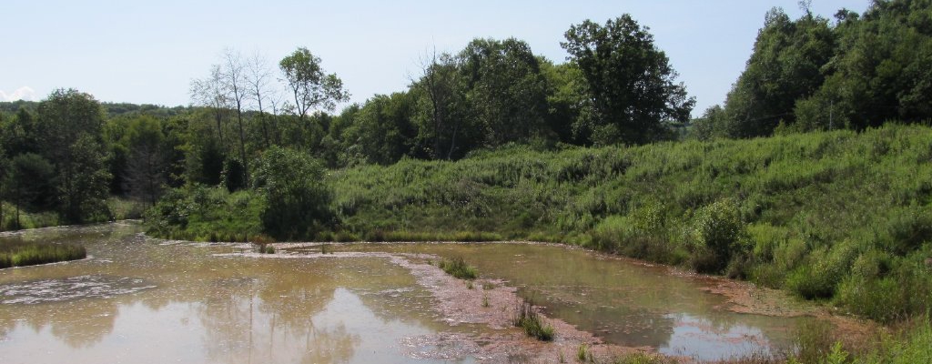 The current system consists of a splitter which distributes the water into three vertical flow ponds (VFPs) containing a mixture of compost and limestone. The VFPs discharge into two wetlands which provide additional settling time for pollutants before the water discharges to the stream. Two of the VFPs share a wetland, while the third discharges to its own wetland. The current system was designed and built by BioMost, Inc. of Mars, PA. Funding for the system rebuild came from three sources: $528,024 from the PA DEP Grower Greener Program, $100,000 from the US Office of Surface Mining Watershed Cooperative Program, and $18,000.00 from the Foundation for Pennsylvania Watersheds. Additional in-kind funding was provided by BioMost, Inc. and Stream Restoration, Inc. (SRI). SRI also helped in obtaining the Growing Greener funding.
