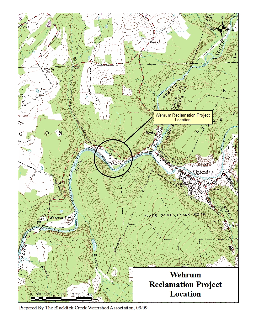 The Wehrum Reclamation Project is located along the Ghost Town Trail. The project involved hauling out about 65,000 tons of coal refuse on the 4.5 acres site. Beneficial ash was used to fill in a 160 foot deep mine shaft and several hazardous concrete abandoned coal cleaning pits. The site was then covered with soil and seeded. Reports, maps, and photos have been posted on the Datashed website at www.datashed.org.